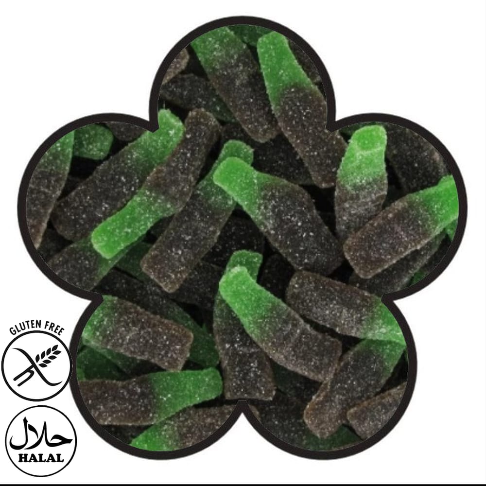 On connaît tous les fameuses bouteilles Cola, qui arriveront d'ailleurs prochainement sur notre site. Il s'agit là d'une variante de bouteilles de cola mais vertes et marrons ! Dans la gamme "Sucrés/Acidulés", ceux-là sont acidulés ! Et en taille MINI ! Pour les fans d'acidulé, nous vous invitons à découvrir cette gamme qui fera vibrer vos papilles ! Chez Candy Sister y'en a pour tout le monde et pour tous les goûts !