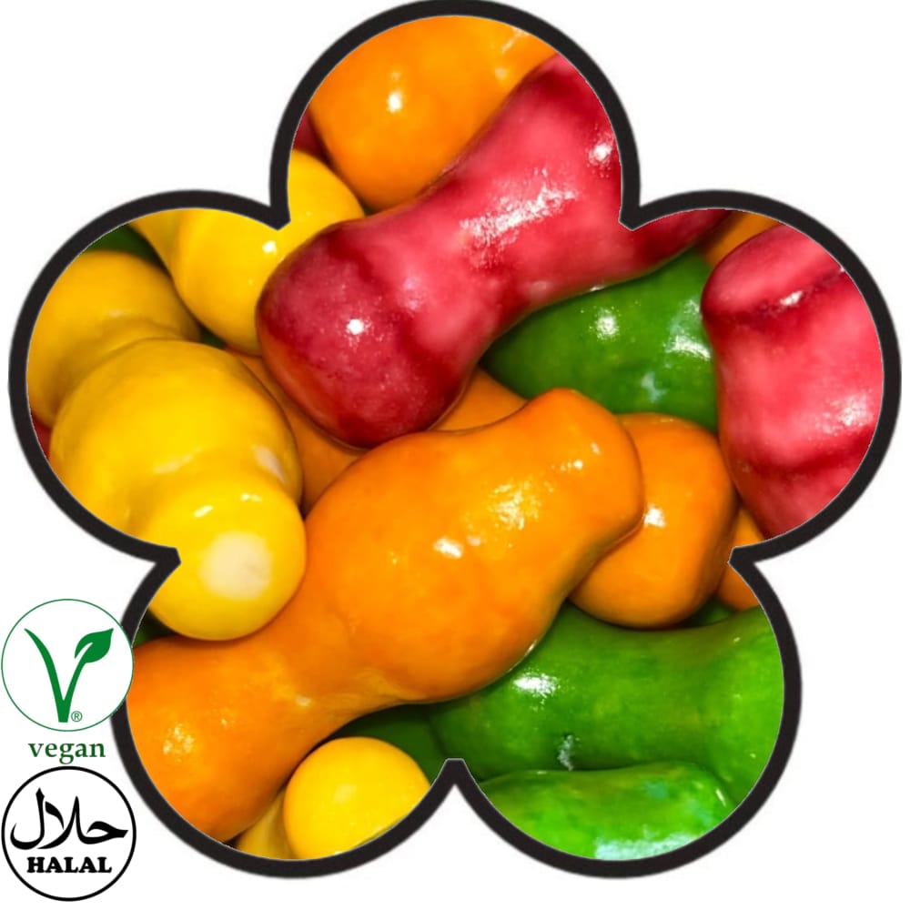 Nos tétines, à la fois ludiques et gourmandes, renferment un cœur de chewing-gum qui ne manquera pas de surprendre petits et grands. Grâce à leur formule unique, les tétines gum changent de goût et de couleur à chaque couche, offrant ainsi une expérience gustative toujours plus surprenante. Vous serez émerveillés par la variété des parfums proposés, allant des saveurs fruitées les plus populaires, telles que la fraise, la cerise et l'orange, aux notes plus audacieuses, comme la pomme verte, la pastèque et la canneberge. Nos tétines gum sont parfaites pour les fêtes d'anniversaire, les soirées entre amis ou tout simplement pour le plaisir de savourer un bonbon original et amusant.